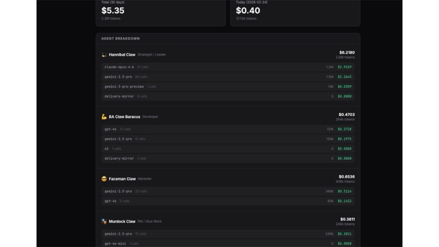네 개의 AI 에이전트를 동시에 운영하다 보니 자연스럽게 토큰 사용량과 비용 관리가 중요해졌습니다. 어느 에이전트가 얼마나 쓰고 있는지 파악이 안 되면 비용이 통제 불능이 될 수 있으니까요.